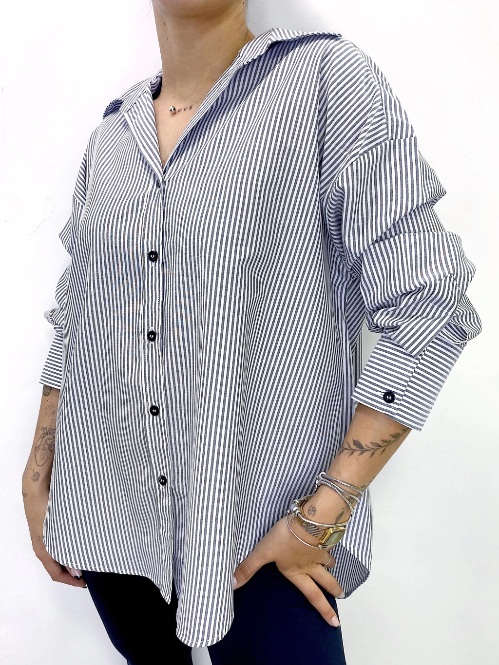 Detalhes: modelagem oversized; punho com dois botões; decote V; fechamento em botões;